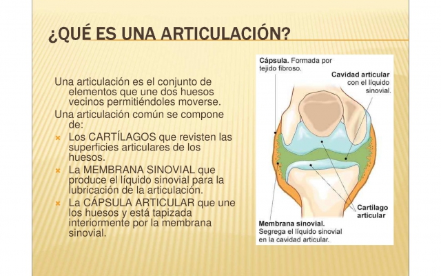 Una articulación es el conjunto de elementos que une dos huesos vecinos permitiéndoles moverse. Una articulación común se compone de: